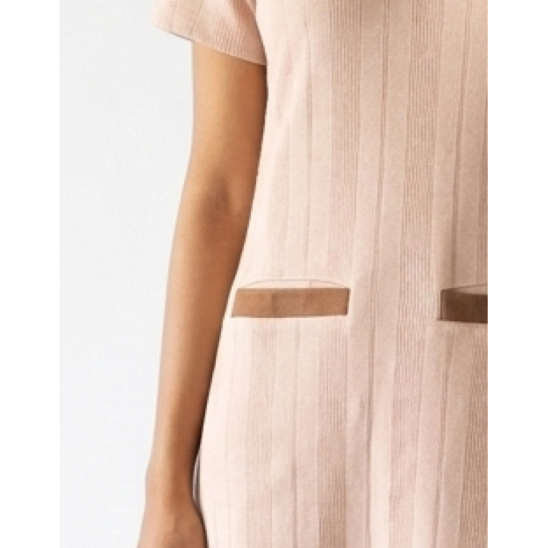 TEXTURED A-LINE DRESS WITH V NECK , WELT POCKET.